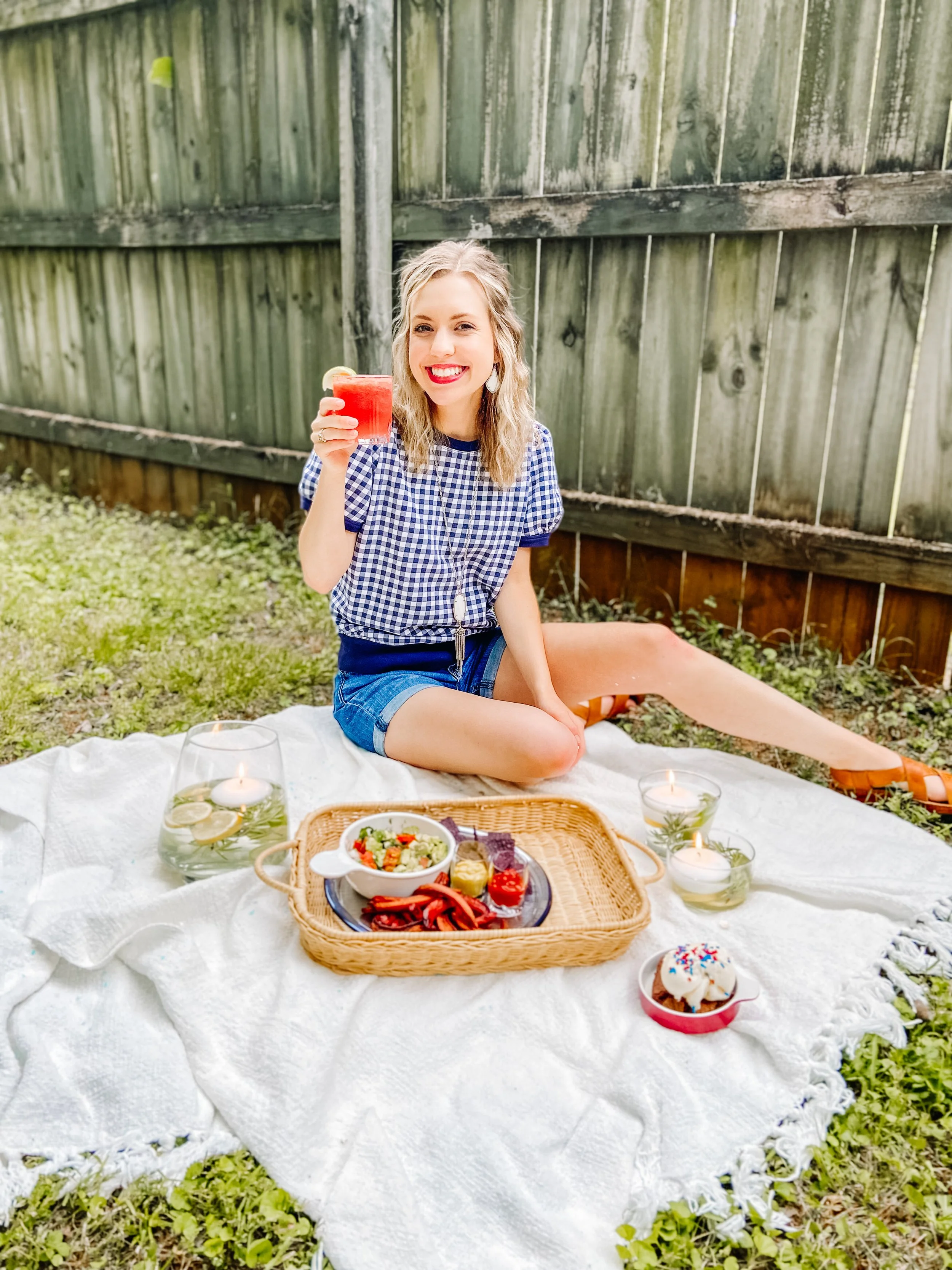 A couple Christmases ago I was gifted a Southern Living party cookbook & this was the perfect holiday to flip through the pages in search for Americana recipes from the South. What made my mouth water first were the brownie ice cream sandwiches. Name something more summer-y I dare you! I had this great expectation of the perfect homemade ice cream sandwiches. Y'all! Ice cream sandwiches are hard, okay? So below you'll see delicious brownie sundaes with festive sprinkles... lol. I like putting dessert first, but salty snacks are just as important. This avocado salsa caught my eye & stole my tastebuds. I love that the tomato brought a vibrant red to the plate. (And blue corn tortilla chips are a game changer!) Next up was the only recipe not from the cookbook: hot dog curly fries. Are there any 'The Kitchen' fans out there? I recently saw an episode devoted to the dog. The hot dog that is and Jeff made a fun finger food twist to the classic cookout staple. My favorite part - they are the easiest & I do mean easiest things to make. He also offered neat "dippers" but I'm a classic mustard & ketchup gal. You can't have a Fourth of July celebration without watermelon & mine came into play with a refreshing cocktail: a watermelon mojito. *Chef's kiss* because this drink is so very tasty with or without rum.
