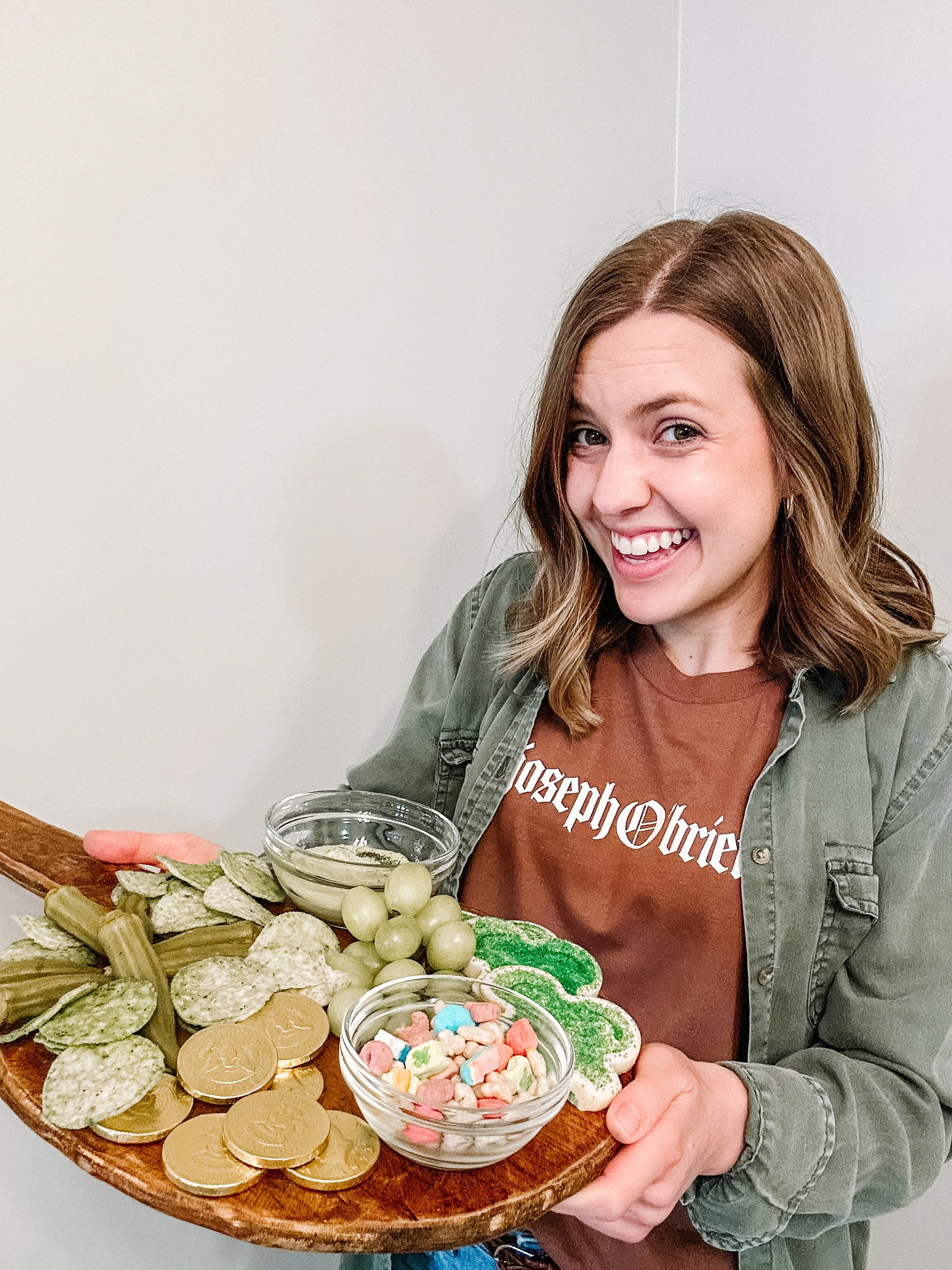 This guy really was a saint! Read about his origins & life here! Treasure hunting for green snacks in the store made creating this board a true treasure hunt! (I'm pretty proud of my pickled okra shamrock.)